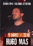 A les 22.30 ens visitarà el cantautor alcoià Hugo Mas, que ens anirà descabdellant les cançons del seu primer treball, aclamat per públic i crítica. El treball de Mas el podeu escolta íntegre, en descàrrega gratuïta. Seguint el blog La Caseta del Plater, aquesta estrena el situa en un territori artístic actualment bastant despoblat: és més urbà i menys lisèrgic que Roger Mas, més salvatge que Miquel Pujadó o més transgressor que Francesc Moisés, cantautors, tots ells, amb els quals, per una raó o altra, el podríem emparentar.  Té molt de camp per córrer i s’hi endinsa a la carrera. A nosaltres, atesa la singular qualitat d’aquestes primeres passes, no ens resta altre que seguir-lo ben a prop. Ací podeu llegir la crítica sencera.