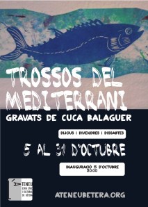 Divendres 5 d’octubre, a les 20.00, inaugurem Trossos del mediterrani, una exposició de gravats de Cuca Balaguer. Vet ací les dades: