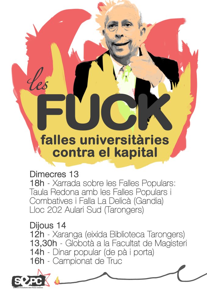 Des de fa deu anys les Falles Populars i Combatives de València ens recorden que l’essència de les falles són l’element popular i crític, per molt que ens vulguen fer creure el contrari. Enguany, des de dijous, ens presenten un programa fabulós; una bona pràctica preparatòria és veure el vídeo del genial himne de les Falles Populars i Combatives de 2013; FAPOCO, made in Ovidi Twins. Un crit de guerra espectacular.