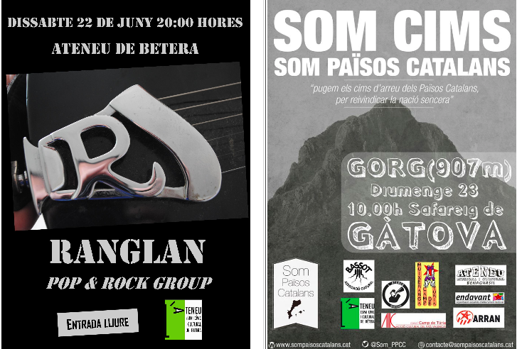 A l’endemà, el diumenge 23 de juny, les entitats de la comarca farem l’ascensió al Gorg, a la Serra Calderona. L’acte s’emmarca dins la campanya Som Cims, Som Països Catalans, que es fa simultàniament a tots els territoris de parla catalana. La cita és a les 10.00, al safareig de Gàtova. Porteu-hi bon calcer, aigua i protecció pel sol.
