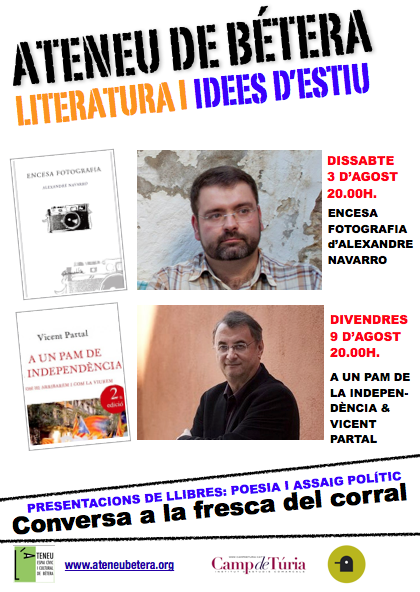 > Captura de pantalla 2013-07-17 a las 16.20.41El dissabte dia 3, a les 20.00, el poeta de Nàquera Alexandre Navarro presenta el darrer llibre de poemes, Encesa fotografia.