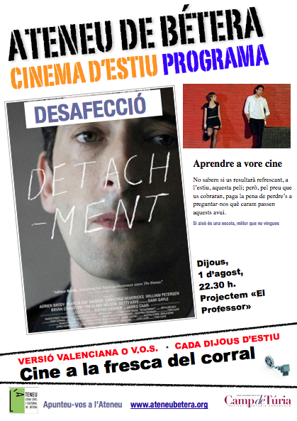 > Dijous 1 d’agost, a les 22.30, cinema a la fresca al corral de l’Ateneu. Detachement, de Tony Kaye. desafeccio