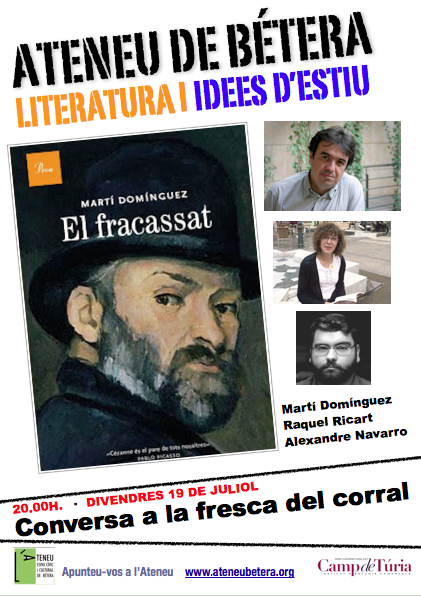 elfracassat> Divendres 19 de juliol, a les 20.00, presentació literària; El fracassat (Edicions Proa), de Martí Domínguez, amb presència de l’autor. Intervindran també Empar Aguado, Raquel Ricart, i Alexandre Navarro.