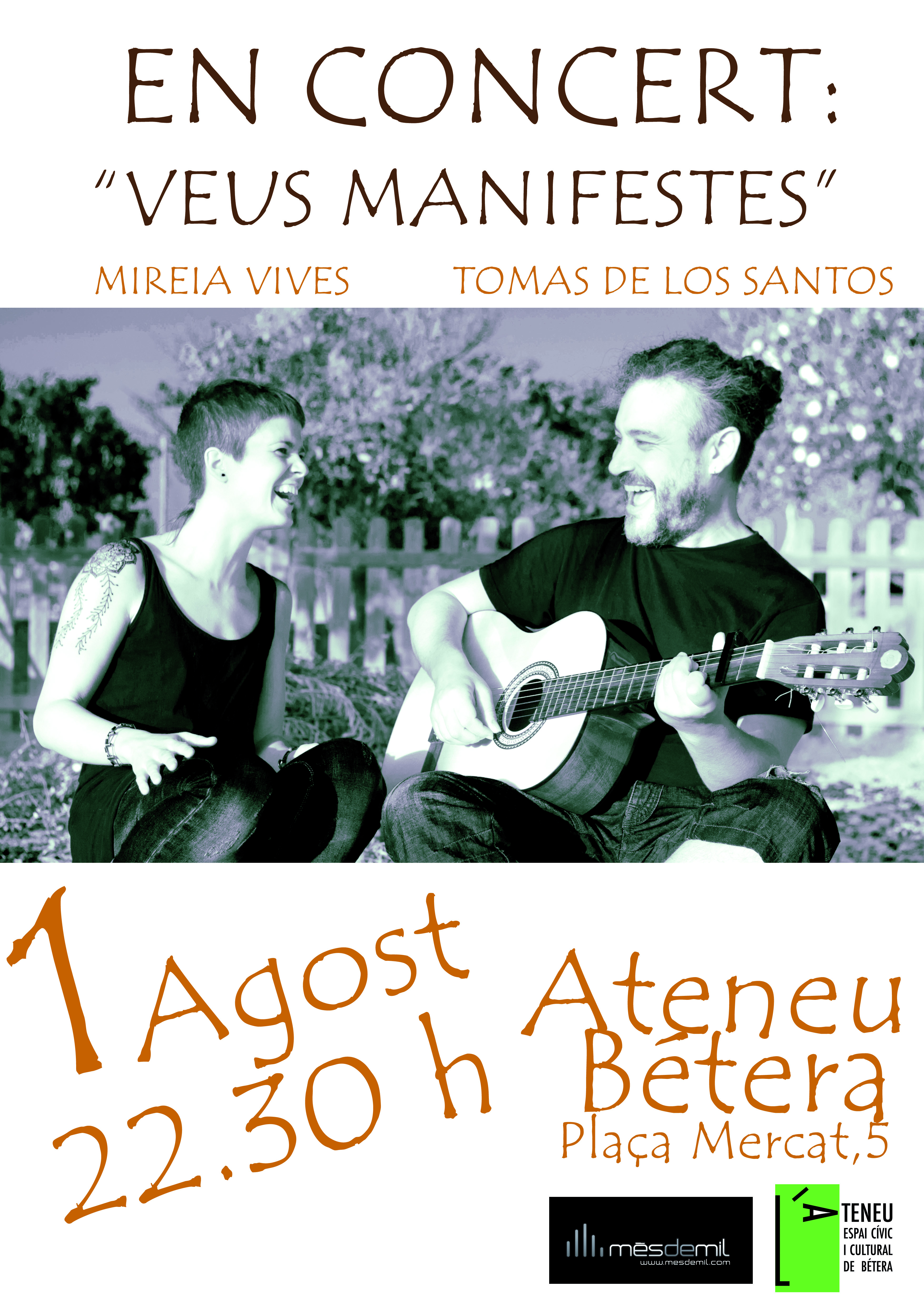 El divendres 1 d’agost, a les 22.30, Mireia Vives i Tomàs de los Santos ens presenten l’espectacle ‘Veus Manifestes‘.