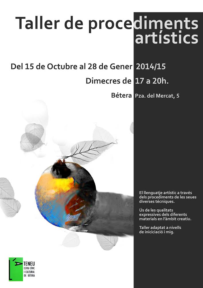 A l’Ateneu posem en marxa una nova iniciativa; el taller de tècniques pictòriques. Tindrà lloc del 22 d’octubre al 2 de febrer, tots els dimecres de 17.00 a 20.00, amb la direcció de Rebeca Català.