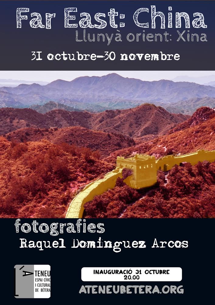 unnamedEl divendres 31 d’octubre, a les 20.00,  inaugurem l’exposició Far East:China. Es tracta d’una mostra de fotografies, a càrrec de Raquel Domínguez Arcos, que romandrà a l’Ateneu fin fins el 30 de novembre.