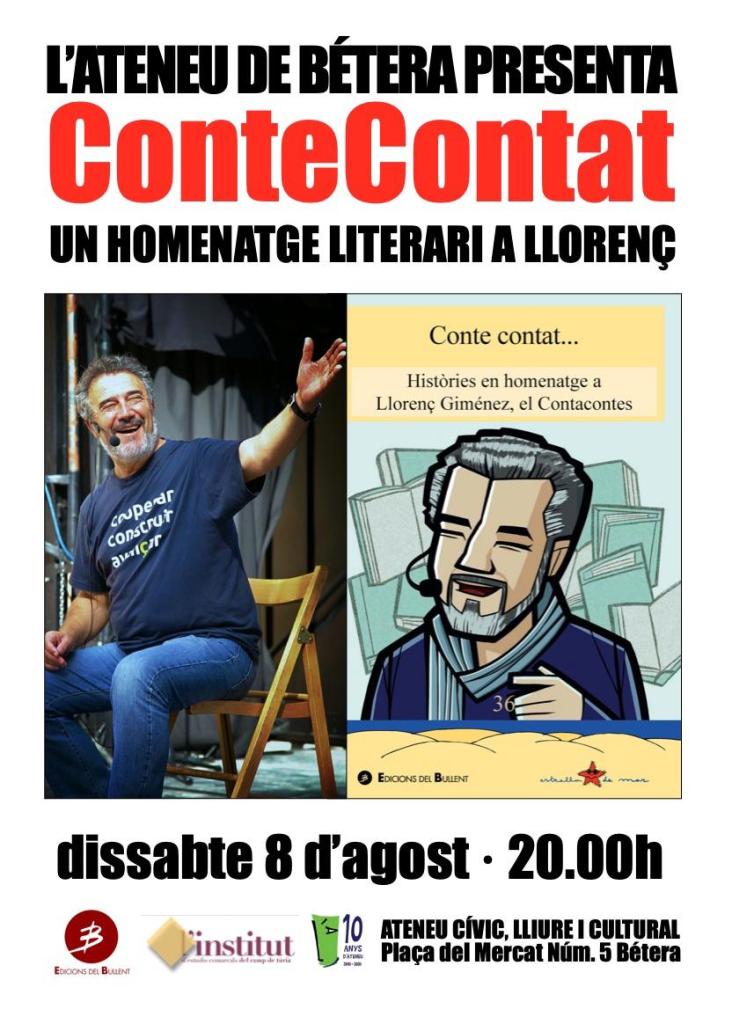 El dissabte 8, l’Ateneu farà la presentació del llibre homenatge a Llorenç Giménez, Conte-Contat. A partir de les 20.00h, un acte sentit que servirà per fer la cloenda de l’exposició que tenim des de Nadal. A la presentació han confirmat l’assistència 9 dels autors dels contes, a més de l’editora, que explicaran el què d’un llibre regal al primer contacontes d’aquest país.Allà mateix podreu adquirir el llibre al preu de 10 euros. Els guanys seran destinats a l’associació Carena.