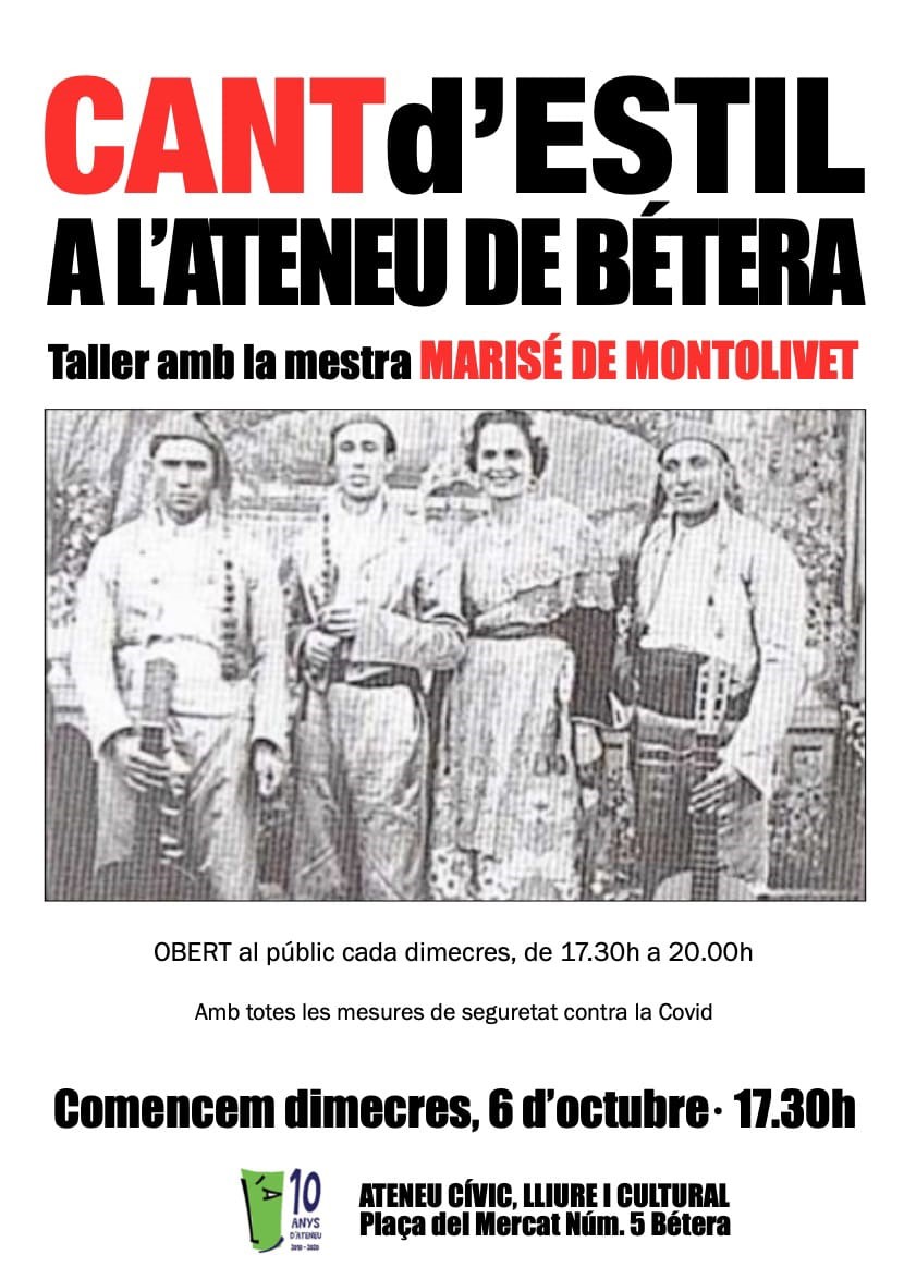 – Els dimecres: TALLER DE CANT D’ESTIL amb la mestra MARISÉ DE MONTOLIVET.
