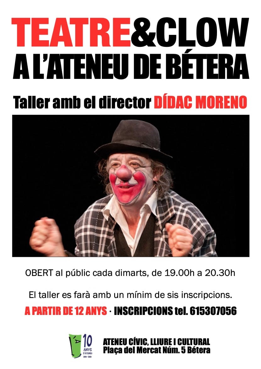 * TALLER de TEATRE & CLOW amb el director DÍDAC MORENO a les 19:00 h.