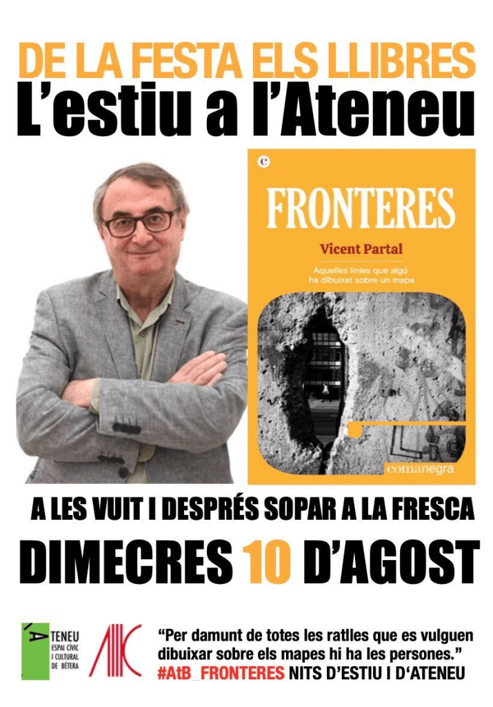 Presentació de Fronteres, de Vicent Partal i, en acabar, sopar a la fresca.