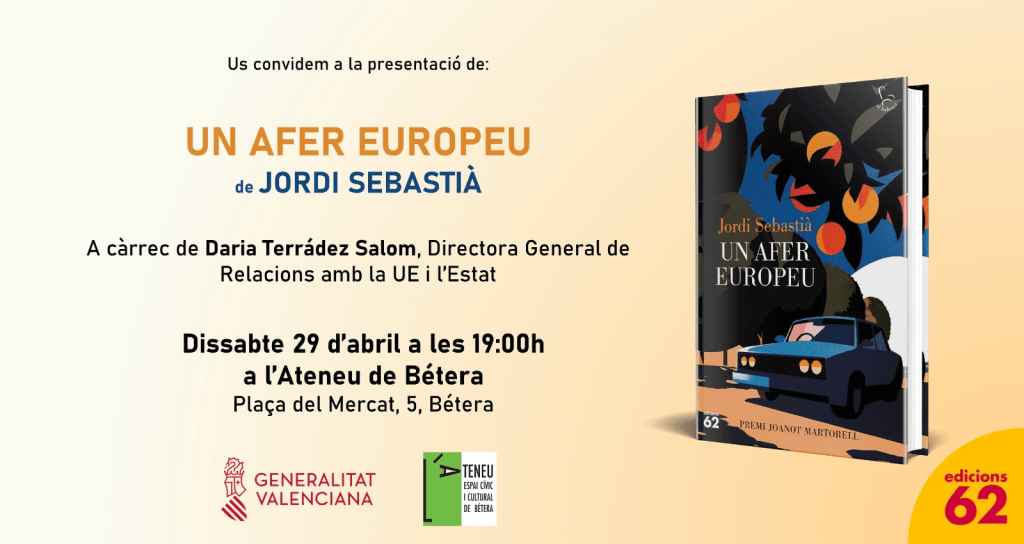 Dissabte 29 d’abril tenim el luxe de comptar amb dos “grans” de la política valenciana amb una àmplia trajectòria en l’àmbit europeu: Jordi Sebastià i Daría Terrádez raonaran sobre Un afer europeu.