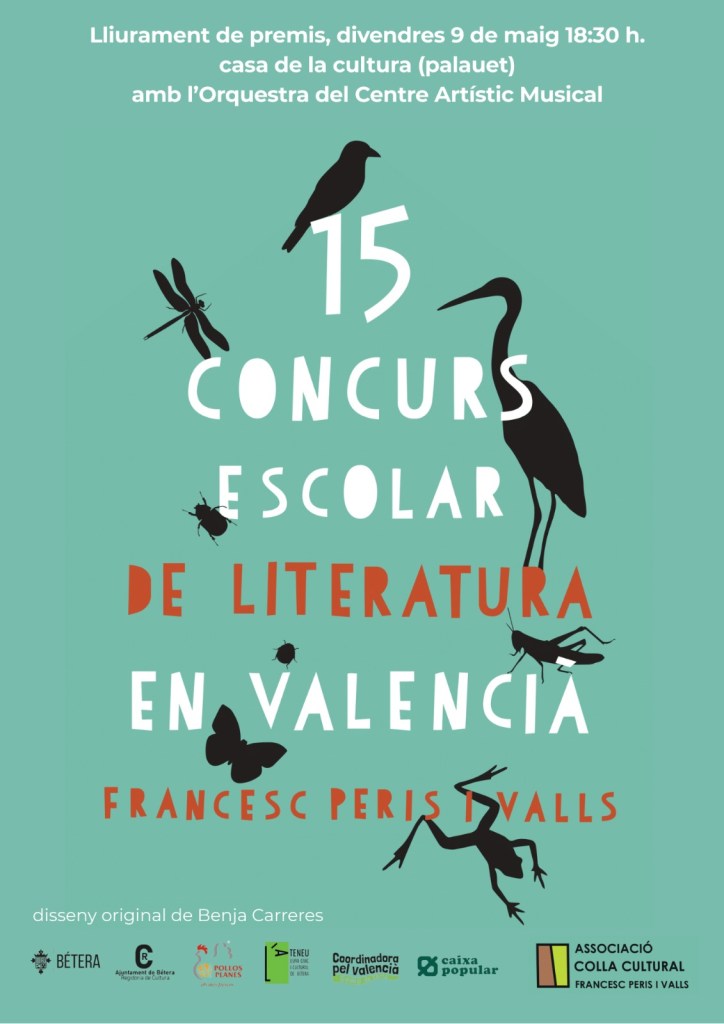 L’ateneu Bétera col·labora a l’entrega dels premis Peris i Valls 2025. Per tant, el divendres no hi haurà activitat a la plaça del Mercat. Si hi voleu assistir, serà al Palauet de la música, a les 18.30h. A més, a l’entrega de premis de poesia escolar actuarà l’Orquestra del Centre artístic musical de Bétera. Encara més, l’organització farà un petit homenatge a Benja Carreres, artista i dissenyador, entre més coses, del logotip del mateix Ateneu així com del cartell cada any dels premis. A l’acte mateix de divendres es presentarà el quadern nou amb els poemes guanyadors, que enguany guanya en disseny i en una sorpresa que encara no desvetllem.