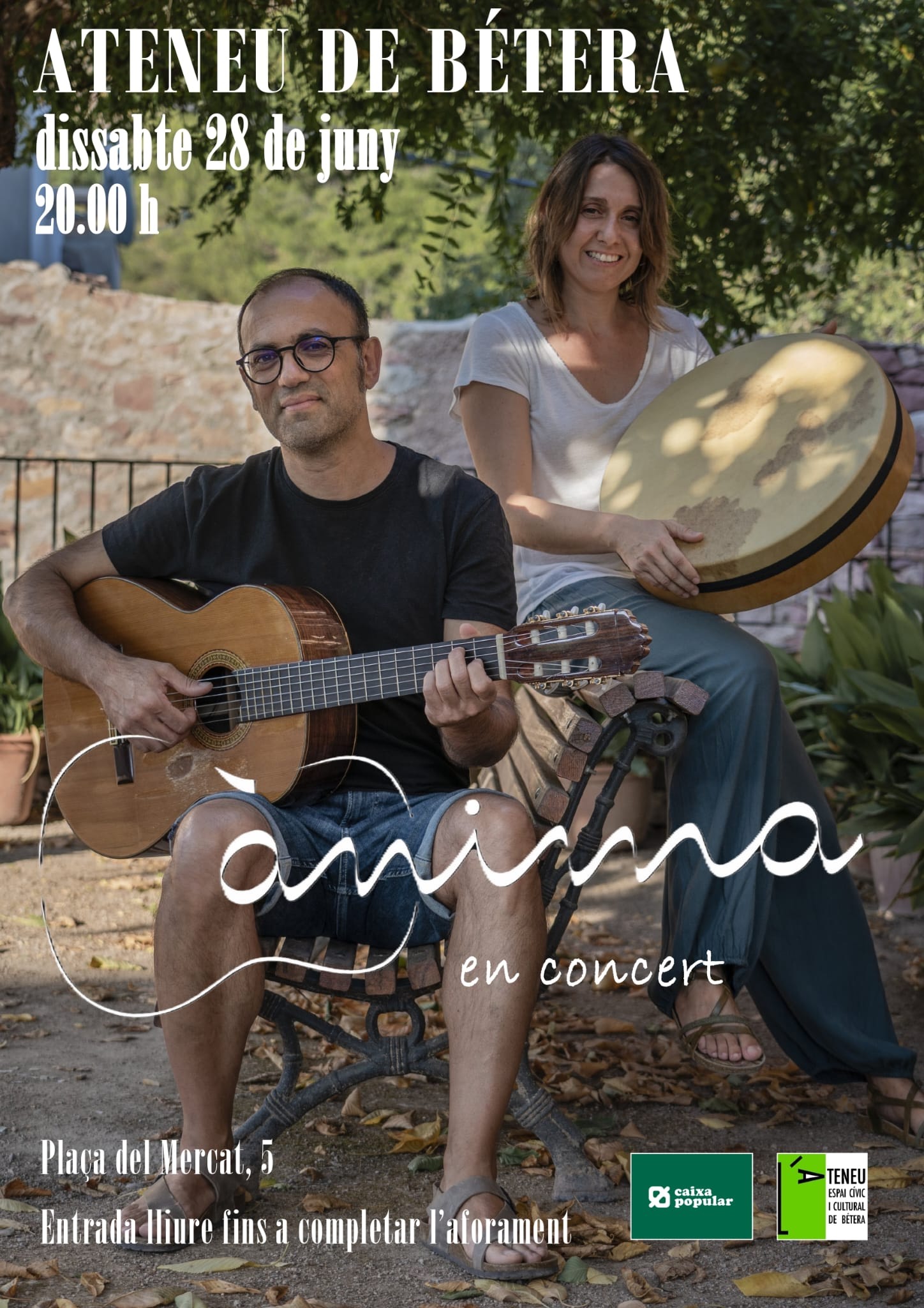 Ànima són Anna Roy i Francesc Sanchis (Olocau, el Camp del Túria). Ens presentaran el seu primer espectacle, VIDA, inspirat en la música d’arrel de casa nostra i de la mediterrània, un univers particular i íntim que es caracteritza pel protagonisme de dues veus i les percussions tradicionals, amb uns arranjaments musicals acurats, un projecte que pretén connectar amb les emocions del públic.