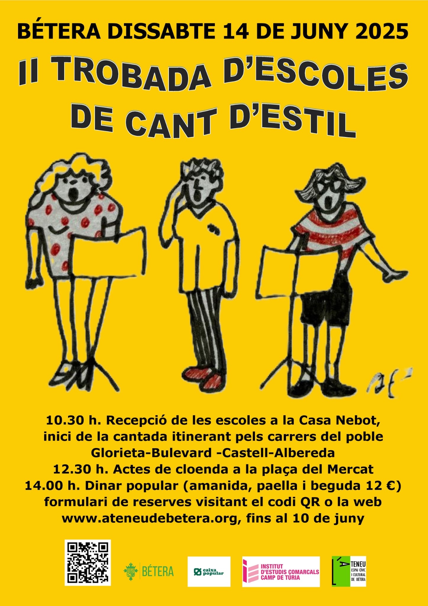 Cinc o sis escoles són ara mateix a Bétera per participar d’aquesta festa pel cant d’estil. L’inici serà a la casa Nebot, i d’allà cap a l’Ateneu, on es farà la cantada grossa i més llarga. La recuperacióde les tradicions populars passa també per aquest moment dolç de cantar un ú o un ú i un dotze, cantar albades o fer-ne de versador… Avui és la festa, doncs, de les escoles i de lluir l’esforç dels alumnes durant l’any. Després hi ha dinar popular.