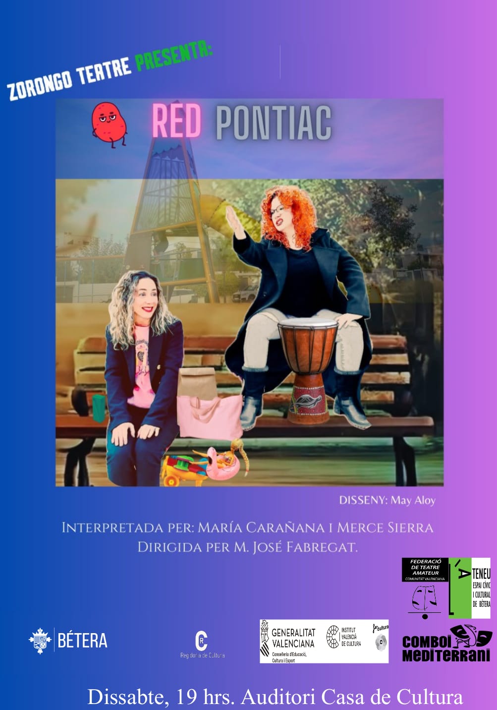 Zorongo/Comboi Mediterrani estrenarà Red Pontiac, una comèdia de Pere Riera a l’auditori de la Casa de Cultura. Dirigida per M.José Fabregat, i interpretada per Maria Carañana i Mercè Sierra. Zorongo, ara Comboi Mediterrani, és una companyia de teatre multipremiada, amb diverses obres en actiu, que resideix a l’Ateneu i dirigeix ​​Dídac Moreno. El dissabte podreu gaudir d’aquesta nova comèdia a partir de les 19.00h