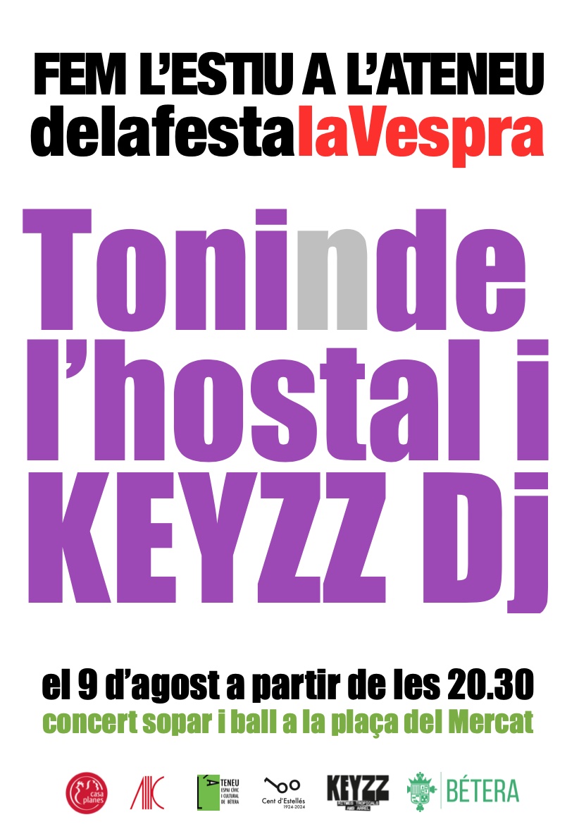 De la festa, la vespra: Toni de l’Hostal en directe, i Keyzz DJ